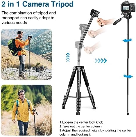 **Product Description: Tripod for Camera – 72″ Tall Camera Tripod Monopod with Remote**